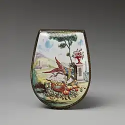 An 18th century enamelled snuff box made in Bilston, now in the collection of the Metropolitan Museum of Art, New York