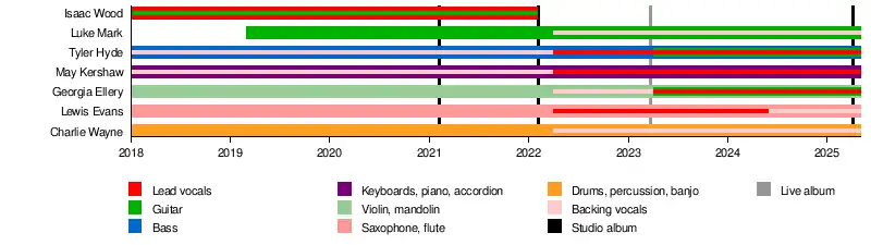 - Isaac Wood – lead vocals, guitars (2018–2022)[28]