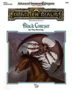 FRA2 Black Courser was written by Troy Denning, with a cover by Brom, and was published by TSR in 1990 as a 32-page book, an 8-page booklet, and an outer folder.[1]