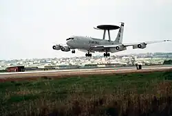 On 14 April 1994, at 07:36 local time, a USAF E-3 AWACS aircraft from the 963d Airborne Air Control Squadron (based at Tinker Air Force Base, Oklahoma) departed Incirlik Air Base (AB), Turkey in support of OPC. The AWACS, with its 19-member crew under the mission crew command of Major Lawrence Tracy, was to provide airborne threat warning and air control for all OPC aircraft during its time aloft. The AWACS crew reported on station at its assigned surveillance orbit altitude of 32,000 feet (9,750 m) located inside Turkey just north of the northern border of Iraq at 08:45. The weather that day was fair and clear over northern Iraq.[4]