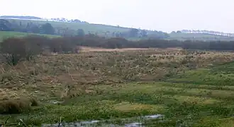 Black Loch (NS 59057 161720) is a freshwater loch, named from its dark waters, situated in the East Ayrshire Council Area, between Cumnock and New Cumnock, lying in a glacial Kettle Hole mainly within the Parish of New Cumnock, with a small portion protruding into Old Cumnock Parish.[1] It is said to be one of only two lochs or lakes in the world that have outflows running to two separate destinations. The 'Runner' is a deep and broad ditch that was dug many years ago to link the three lochs of Lowes, Black, and Creoch.[2]