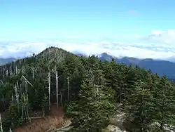 Mount Mitchell (foreground, left) and Clingmans Peak (background, right) viewed from Mount Craig