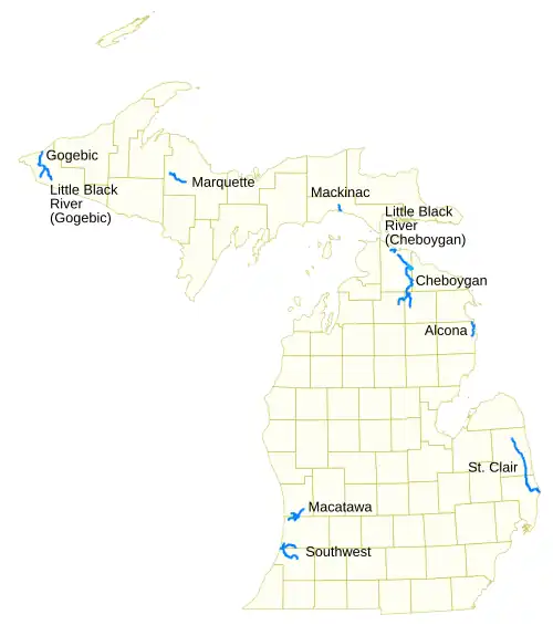 - Black River (St. Clair River tributary), rises in Sanilac County and flows into the St. Clair River at Port Huron, Michigan