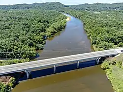 U.S. 53 Black River bridge near Galesville, Wisconsin. The Black River is a large part of the boundary between La Crosse County and Trempealeau County.