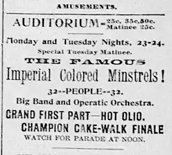 - ^ "The Stage." News/Opinion, The Freeman, p. 5, June 9, 1900. Indianapolis, Indiana
