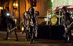 Black Veil Brides in the music video for "Rebel Love Song". From left to right: Jinxx, Ashley Purdy, Andy Biersack, Christian "CC" Coma, and Jake Pitts