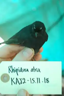 1. ^ BirdLife International (2016). "Rhipidura atra". IUCN Red List of Threatened Species. 2016: e.T22706836A94092928. doi:10.2305/IUCN.UK.2016-3.RLTS.T22706836A94092928.en. Retrieved 13 November 2021.