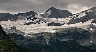 Jackson and Blackfoot glaciers have been selected for monitoring by the U.S. Geological Survey's Glacier Monitoring Research program, which is researching changes to the mass balance of glaciers in and surrounding Glacier National Park. The glacier is being monitored using remote sensing equipment and repeat photography, where images of the glacier are taken from identical locations periodically.[6] Between 1966 and 2005, Blackfoot Glacier lost over 23 percent of its surface area.[3] In the summer of 2007, a portion of Blackfoot Glacier broke off and formed an ice avalanche.[7]