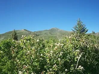 This area is mainly a hilly shrub-steppe, covered in sagebrush and juniper. However, there are many springs and small streams which form microclimates with more water-loving plants. The mountains themselves are mainly basalt.