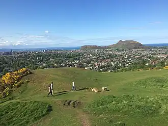The hill has clear views over Edinburgh to the north, and the Pentland Hills to the south. It is popular with walkers, as it has many well established paths, as well as runners and other leisure users. There is a wide range of flora and fauna within a green belt area of Edinburgh, making it an important target for conservation.[1] Around half of the area is unimproved grassland.[1]