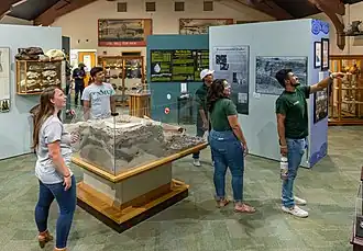 In 2017, the museum moved onto the Eastern New Mexico University (ENMU) campus, and expanded its focus to incorporate local history, as well as archaeology on a broad scale. Exhibits now include descriptions of archaeological work, different archaeological sites, cultural complexes, and scientific methods, among other topics. Visitors can learn more information about Blackwater Draw, archaeology, and see materials from the greater Southwest obtained from private collections. Currently, the Miles Collection displays Southwestern pottery, basketry, and textiles. As of June 2025, Blackwater Draw is overseen by Director Dr. Brendon Asher, Museum Manager Cenetria Crockett, and Collections Specialist Kylie Colvill.[22][23]