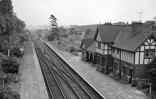 - Biddle, Gordon (1981). "Chapter 1 – North Cheshire & The Peak". Railway Stations in the North West. Clapham, Yorkshire: Dalesman. p. 9, fig. 3. ISBN 0-85206-644-9. – 1962 photo of station building