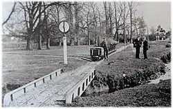 The track was laid in 1903 by Charles William Bartholomew (1850–1919) on his estate at Blakesley Hall. He was a wealthy civil engineer and landowner, major shareholder of the Great Central Railway and the East & West Junction Railway (E&WJR), self-proclaimed squire of the communities of Blakesley and Woodend. It was inaugurated in 1903 with a Cagney steam locomotive. In the following year, 1904, another Cagney steam locomotive was temporarily used on the track, which is now on display at the Strumpshaw Hall Steam Museum in Norfolk. In 1905, the petrol locomotive Petrolia was built and put into operation. The route was extended in 1909 to the bungalow of the farm, while a large part of the circle and the wye were dismantled. The locomotive Blacolvesley was delivered on 11 September 1909. The Cagney was then lent to the Sutton Hall Railway.[2]