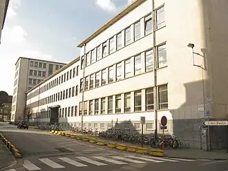 The Blandijn, short for Blandijnberg, is a building complex of Ghent University in the Belgian city Ghent and directly adjacent to Boekentoren, the tower of the Ghent University Library. The Blandijn, named after the Blandijnberg hill it stands on, houses the Faculty of Arts & Philosophy. The first part of the Blandijn buildings was officially opened in 1960.[1] The Blandijn complex is located centrally in Ghent's student neighborhood. There are several other university buildings within walking distance of the Blandijn.