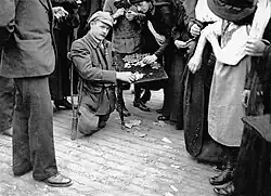 A war amputee selling bleuets on the Champs-Élysées, 4 July 1919.