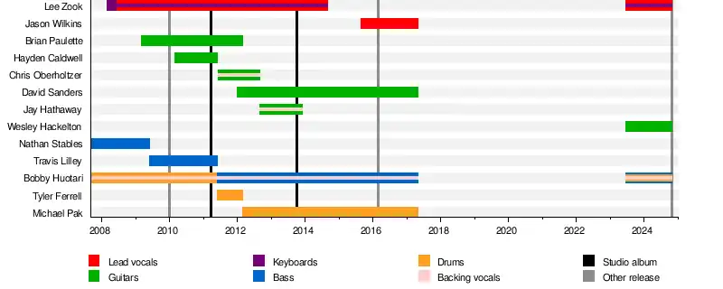 - Lee Zook – lead vocals, keyboards (2008–2014; 2023–2024)