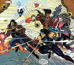The villains of the crossover were the formerly imprisoned survivors of a race of alien parasites named Angon, Gemir, Glonth, Lissik, Pritor, Venev, and Slodd that could shapeshift into humanoid forms. They commonly kill others by feeding on their spinal fluid, which can awaken superhuman powers in the recipient.[1]