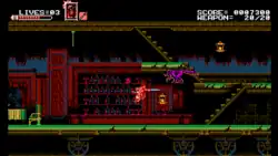 Bloodstained: Curse of the Moon is a 2018 action-platform game developed and published by Inti Creates. It is a companion title to developer ArtPlay's 2019 game Bloodstained: Ritual of the Night and was conceived to fulfill the promise for a retro-style accompaniment to Ritual of the Night after its Kickstarter campaign exceeded crowdfunding goals. Curse of the Moon follows Zangetsu, a cursed swordsman hunting down demons for revenge, as well as three other playable characters named Miriam, Alfred and Gebel. It features an 8-bit aesthetic and gameplay style similar to Castlevania games on the Nintendo Entertainment System (NES), particularly Castlevania III: Dracula's Curse (1989).
