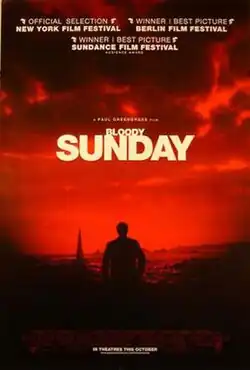 Bloody Sunday is a 2002 film written and directed by Paul Greengrass based around the 1972 "Bloody Sunday" shootings in Derry, Northern Ireland. Although produced by Granada Television as a TV film, it premiered at the Sundance Film Festival on 16 January, a few days before its screening on ITV on 20 January, and then in selected London cinemas from 25 January.