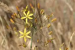 Bloomeria crocea, also known as goldenstar, is a geophyte from southern California and northern Baja California. It is found along hillsides, in grassland and chaparral edges, and in dry flats.