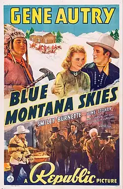 Blue Montana Skies is a 1939 American Western film directed by B. Reeves Eason and starring Gene Autry, Smiley Burnette, and June Storey. Based on a story by Norman S. Hall and Paul Franklin, the film is about a singing cowboy who goes up against a gang of fur smugglers operating near the Canada–United States border.[2]