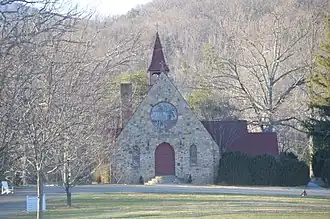 The original 148 acre (0.6 km2) campus, located 20 miles (32 km) from Charlottesville, Virginia, sits at the foothills of the Blue Ridge Mountains. The campus has grown to nearly 750 acres (3.2 km2) and includes a lake and several ponds. The Robert A. Gibson Memorial Chapel, the Martha Bagby Battle House (former Headmaster's Residence), and the old St. George Post Office still stand on the school's grounds. The Gibson Memorial Chapel, designed by architect Ralph Adams Cram and built in 1929–1932, and the Martha Bagby Battle House were listed on the National Register of Historic Places in 1993.[11]