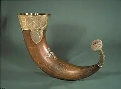 On the Norwegian "Kongshornet" (The King's Horn) the coat of arms of the old Galte-clan can be seen before it became "Galtung" in the times of Danish superiority over Norway. The horn is currently in a Danish collection in Copenhagen, which has refused Norway's request to return it.[1] The coat of arms would have been a golden or silver (in the sagas "radiant") boar symbolizing Ynglinga on a blue background, along a shell symbolizing the sea or Christian pilgrimage.