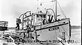 Blue Diesel tug (100 hp (75 kW)) owned by Jim McRitchie, operator of a sawmill on the Slave River in 1947. The boat moved milled lumber to customers in Yellowknife and around Great Slave Lake.