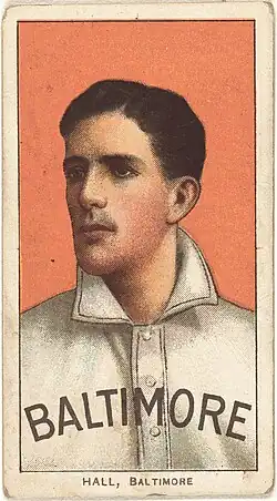 Robert Prill Hall (December 20, 1878 – December 1, 1950) was an American professional baseball player who played infield and outfield during the 1904 and 1905 seasons. He was a utility player including games at right field, Center field, left field, first base, second base, shortstop, and third base. Bob played for the Philadelphia Phillies in 1904, and the New York Giants and Brooklyn Superbas in 1905. Hall made his debut on April 18, 1904. In 103 career games, he had 75 hits in 369 at bats, which is a .203 average. He had 2 home runs, 32 RBIs, and 13 stolen bases. Hall played in his final game on October 7, 1905, and died on December 1, 1950, in Wellesley, Massachusetts.