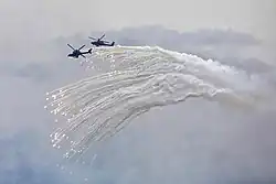 In July 2014, the Pentagon announced that Apaches had been dispatched to Baghdad to protect embassy personnel from Islamic State militant attacks. On 4 October 2014, Apaches began performing missions in Operation Inherent Resolve against Islamic State ground forces.[151] In October 2014, U.S. Army AH-64s and Air Force fighters participated in four air strikes on Islamic State units northeast of Fallujah. In June 2016, Apaches were used in support of the Iraqi Army's Mosul offensive[152] and provided support during the Battle of Mosul, sometimes flying night missions supporting Iraqi operations.[153] In December 2019, two Apaches provided overwatch for U.S. Marines to secure the U.S. embassy in Baghdad, Iraq after armed militants, supported by Iran, attempted to storm the facility.[154][155]