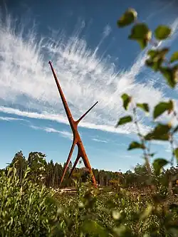 Bog Fox is 45 metres high at its highest point, weighs 38 tonnes and should last for at least 50 years. The designer pylon is made of COR-TEN steel, which gives the pylon its characteristic rusty hue. The pylon's trunk is 1.66 metres at its thickest point and the wall's maximum thickness is 22 mm.