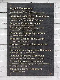 Bogoslovskoe Cemetery (Russian: Богословское кладбище) is a cemetery in Saint Petersburg, Russia.[1] It is located in the Kalininsky District of the city between Laboratornaya Street and Prospekt Mechnikov.