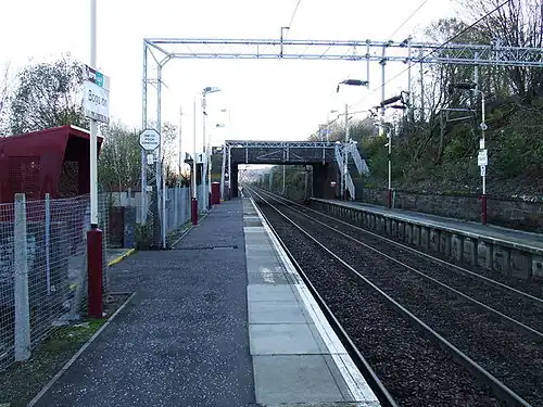 ![]() In the east end of Greenock, on the Glasgow-Gourock line. The Glasgow-Wemyss Bay line runs atop the embankment on the right. | |||||