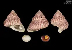 2. ^ Alf A. & Kreipl K. (2011) The family Turbinidae. Subfamilies Turbininae Rafinesque, 1815 and Prisogasterinae Hickman & McLean, 1990. In: G.T. Poppe & K. Groh (eds), A Conchological Iconography. Hackenheim: Conchbooks. pp. 1-82, pls 104-245.