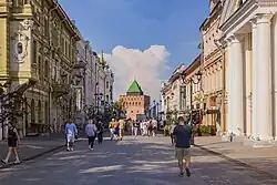At the end of the 16th to the beginning of the 19th centuries stone buildings were added to the street.[2] Since then it has become the main street of the city and has become known as the "noble family", because of the location on it of the estate of the generals, princely families, the governor, the vice-governor and other high officials.[3] In 1896 Nicholas Theater was built, the opening of which was timed to coincide with the beginning of the All-Russia Exhibition. On 18 July 1896, it was visited by Emperor Nicholas II.[4]