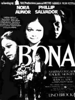 Bona is a 1980 Filipino drama film directed by Lino Brocka from a story and screenplay written by Cenen Ramones. Starring Nora Aunor as the title character, the film tells the story of a young girl infatuated with a bit actor, played by Phillip Salvador. Aunor also produced the film through her production company, NV Productions.