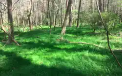 Bond Park offers regular classes in birding, helping people learn how to identify the many birds that can be found in the park's various habitats[31][32] In the Great Backyard Bird Count of 2019, spotters counted 32 species in the park.[32] Hermit thrushes, pine warblers, and yellow bellied sapsuckers can be spotted in the woodland areas.[31] At the edges of the woods, birdwatches can spot Carolina chickadees, brown headed nuthatches, and white breasted nuthatches. The meadows are home to eastern bluebirds, eastern phoebes, white throated sparrows, and yellow rumped warblers, while the wetland areas bring belted kingfishers, red shouldered hawks and winter wrens.[31] Double crested cormorants, pied billed grebes, and ruddy ducks like Bond Lake. Eddie Owens, who teaches “Bird Walks in Bond Park," says bald eagles are spotted several times a week near the lake.[31] Other birds in the park include brown creepers, cedar waxwings, crows, golden crowned kinglets, the great horned owl, northern cardinals, and pine siskens.[31]