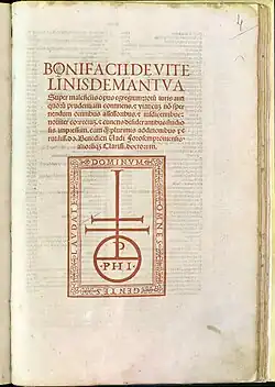 Bonifazio Vitalini (De Vitalinis) (b. at Mantua, Italy, about 1320; d. at Avignon after 1388) was an Italian jurist. It is now supposed that his name has become attached to works of Bonifacius Antelmi, somewhat earlier, and others. These attributions came with the era of printing. [1]