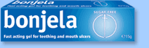 Bonjela is a brand of oral treatments intended to relieve the pain of mouth ulcers and denture sores. The brand covers a range of products. Bonjela Adult and Cool are oral gels containing keratolytic and mildly antiseptic salicylic acid in the form of its salt choline salicylate and the antiseptic cetalkonium chloride as active ingredients.