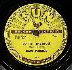 "Boppin' the Blues" is a 1956 song written by Carl Perkins and Howard "Curley" Griffin and released as a single on Sun Records in May 1956. The single was released as a 45 and 78, Sun 243, backed with "All Mama's Children", a song co-written by Perkins with Sun labelmate Johnny Cash.[1]