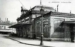Bordeaux-État was closed at the creation of the SNCF and all services were rerouted to Saint-Jean. The station was situated near the Pont de Pierre and was subsequently converted into a cinema and restaurants.