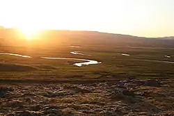 Borgarfjörður (Icelandic pronunciation: [ˈpɔrkarˌfjœrðʏr̥] ⓘ) is a fjord in the west of Iceland near the town of Borgarnes. Although the waters of Borgarfjörður appear calm, the fjord has significant undercurrents and shallows. The many flat islands lying in the fjord are for the most part uninhabited.