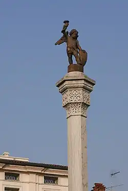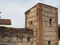 According to Castellini, this collection of eastern borghi was protected by a defensive moat from at least 1182. Following their defeat by a Veneto-Florentine coalition in 1344, the Scaliger rulers reinforced these defences by adding ramparts—raised earthen embankments. Access was restricted to five gates (or controlled openings), likely guarded by wooden watchtowers known as ''battifredi''.[22] These gates, listed counterclockwise starting from the north, were: San Vito (or Santa Lucia), leading towards the San Vito area; Lisiera; Roblandine, at the end of modern-day Contrà San Domenico; Camisano (also known as Torricelle or Porta Padova), facing Padova; and Camarzo,[23] located near the San Pietro Monastery.