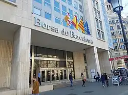 The Stock Exchange of Barcelona (abbreviation, BCN) is a stock exchange located in Barcelona, and is one of the main exchanges in Spain. It is located in the Eixample District, on Passeig de Gràcia.[1]