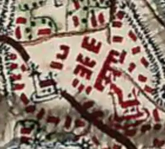 ![]() Borshchiv Castle on the map by Friedrich von Mieg, 18th century | |