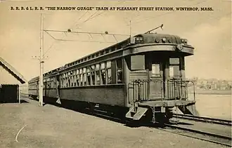 1. ^ a b c d e f g h Stanley, Robert C. (1980). Narrow Gauge - The Story of the Boston, Revere Beach & Lynn Railroad. Boston Street Railway Association.