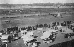 Botafogo's racing career began as a two-year-old in a 1000 meter race where he beat ten other horses in 1:00+35.[9] He next ran in the 1000 meter Clásico Guillermo Kemmis on March 11, 1917. He won the race easily by one and a quarter lengths in a time of :59+35.[8][10] Botafogo made a great impression with the win, but didn't race again until May 26, when he won the 1400 meter Clásico Salvador J. Boucou at Hipódromo Argentino de Palermo under jockey Jesús Baslías. He covered the 1400 meters in 1:24, winning wire to wire in a gallop by several lengths.[11][12]