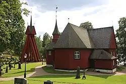 The church belongs to the Norra Mo Parish within the Diocese of Skara of the Church of Sweden. It was built in the late 17th century, replacing a medieval church demolished in May 1666. The new church was completed in May 1695. The church is built entirely of wood. South of the church stands a wooden bell tower built in 1686. The church has a sandstone baptismal font dating from the Middle Ages. The altarpiece was created in northern Germany in the early 17th century and the wood-carved pulpit with canopy dates from 1670. Between 1886 and 1890, the church underwent re-construction under the direction of architect Helgo Zettervall (1831–1907).[2][3]