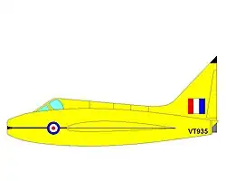 - Powerplant: 1 × Rolls-Royce Nene 3 RN.2 turbojet, 5,100 lbf (23 kN) thrust