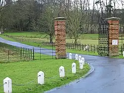 The house is surrounded by parkland of which all but the adjacent 3.6 hectares (9 acres) are now separately owned. Notable features of the gardens are the 18th-century lime avenue, the yew walk and fine examples of Wellingtonia and cork oak. Some trees were lost in the storm of October 1987. There is also a private cricket ground, known historically as Bourne Paddock.[4]